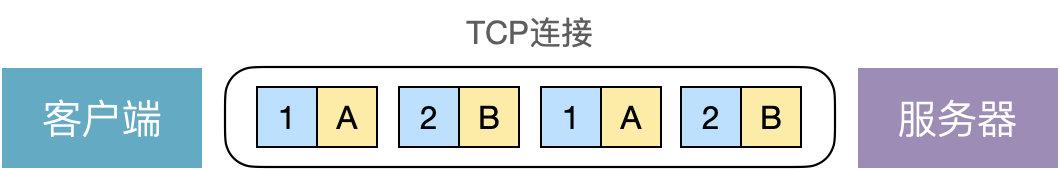 一个请求就对应一条流,通过 Stream ID 就可以判断该数据帧属于哪个请求,假设有 A 和 B 两个请求,对应的 Stream ID 分别为 1 和 2,那这个 TCP 连接上传输的数据大概如下: